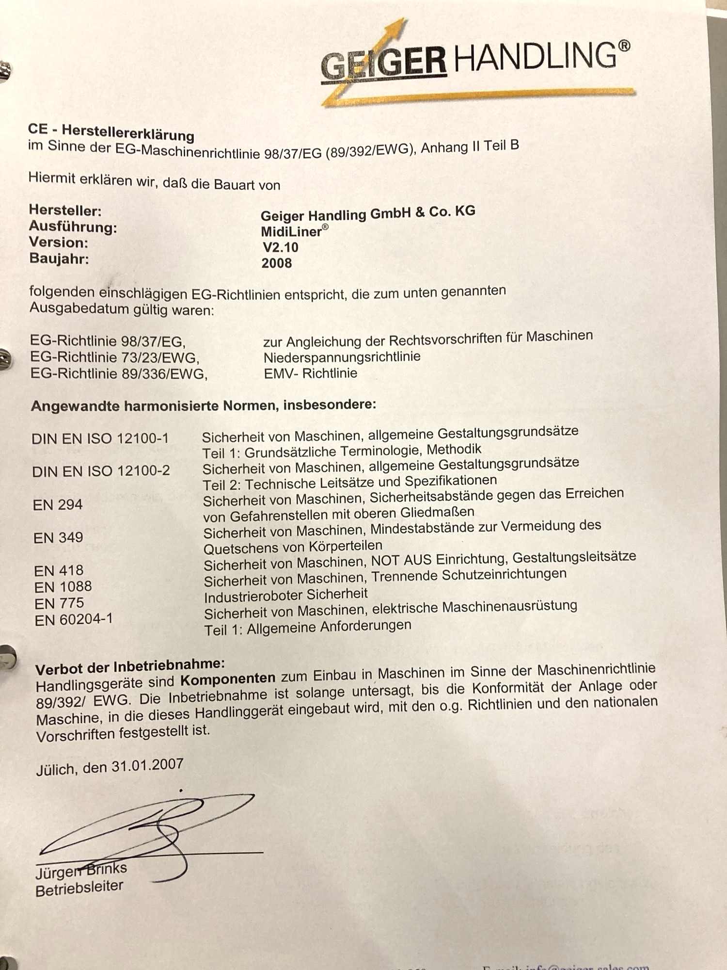 Geiger Midiliner x=600 mm y vert. =1000mm Z=2000 mm +C Bj.2008 (mit easycontrol)Beschreibung: